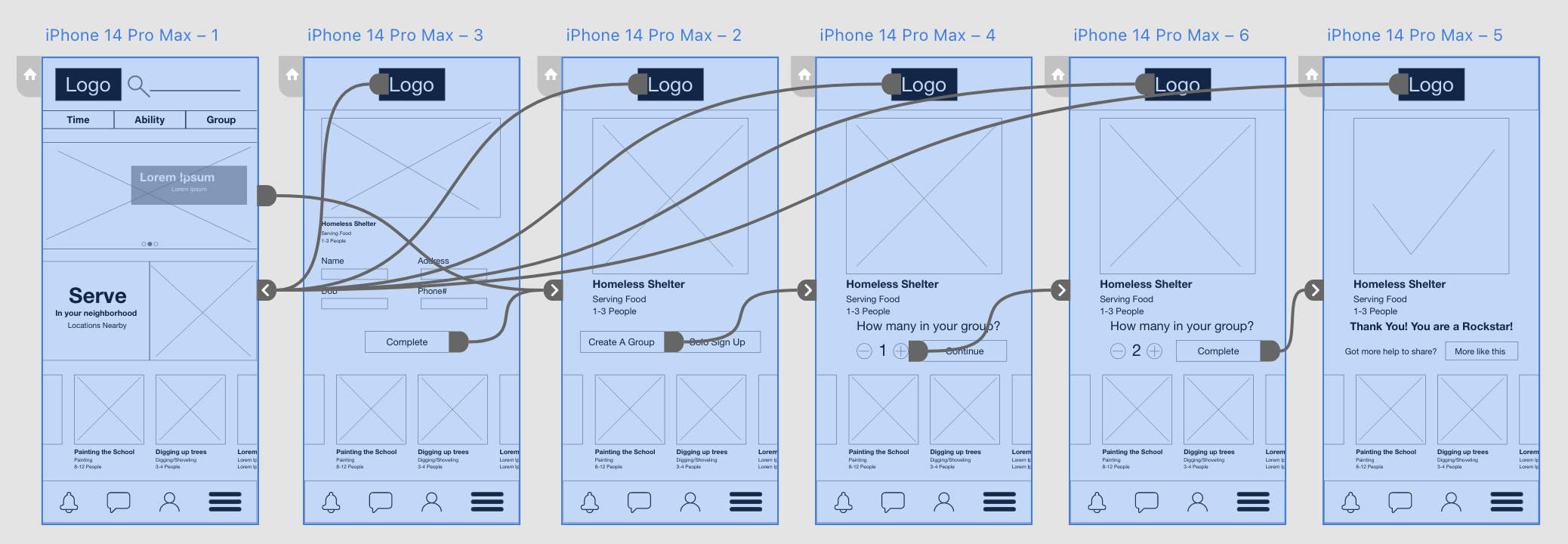 UX Design where Volunteers can easily register and sign up to serve their local communities.