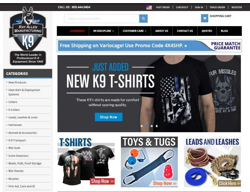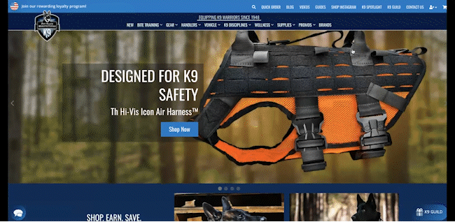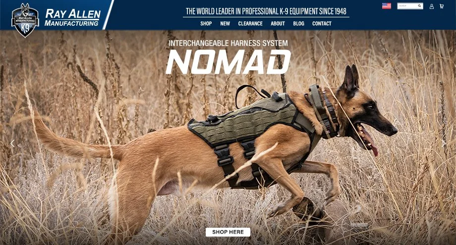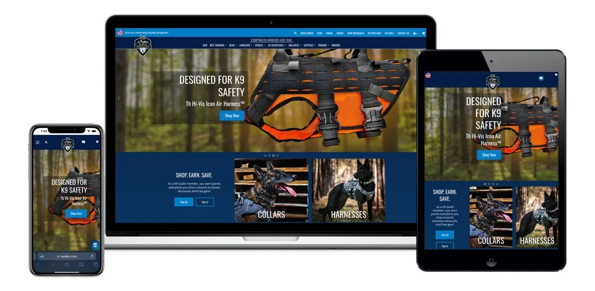 The K9 Guild is a rewards program our team designed to help draw a visitor further into the brand of Ray Allen and it is an ideal opportunity to prompt the visitor to share their contact details in exchange for a 10% discount and a K9 equipment resource.